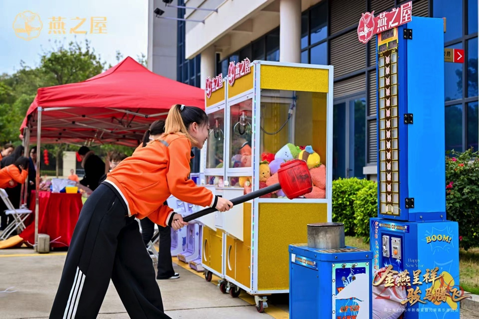 隨后,元宵喜樂游園會的帷幕悄然拉開,游園現場設計了五大游戲環節,從傳統經典的錘丸、竹馬跳欄,到現代化的記憶翻轉、投籃機、接棒機,融匯古今,令人意猶未盡。別具匠心的非遺傳統漢服簪花體驗,與大力錘機、娃娃機、彈彈珠機、滾輪印章等趣味互動,更添團圓喜氣。大家在打卡互動中收獲歡笑、凝聚情誼,暢享喜樂元宵。